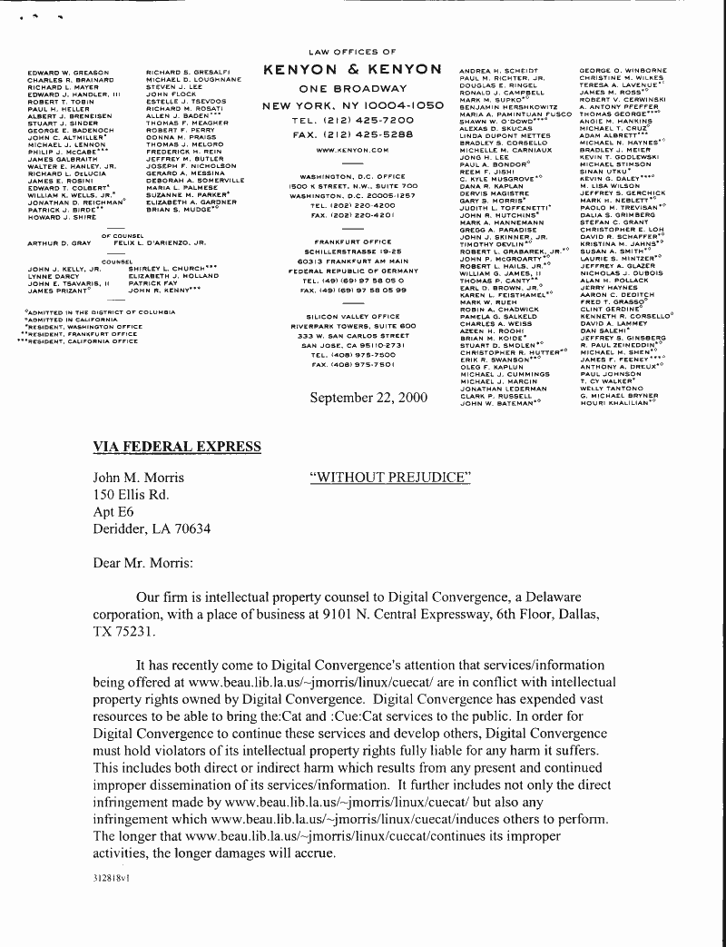 Update 00/09/03 The first hit from Digital Convergence appeared in the logs this morning. Now we see if they plan to fish or cut bait. Hopefully wiser heads will prevail now that it's turning into a protest movement, they will shut up and we can all go back to coding. Or I dig out the suit and get ready for an appearance in Federal District Court.